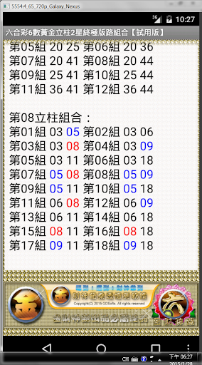 免費玩18六合彩6數黃金立柱2星終極版路組合【試用版】 APP玩免費