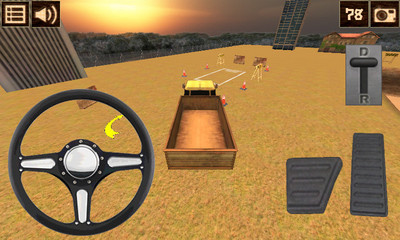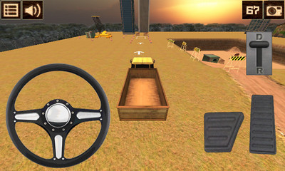 游戏是在3D环境暴露下的重型卡车停车场,有上百个具有挑战性的停车任务。屏幕左下角是方向盘,精密控制转向;右下角是驱动和刹车,D、R分别代表前进和后退。在这里,停车难度逐级递增,带给你逼真的驾驶体验。