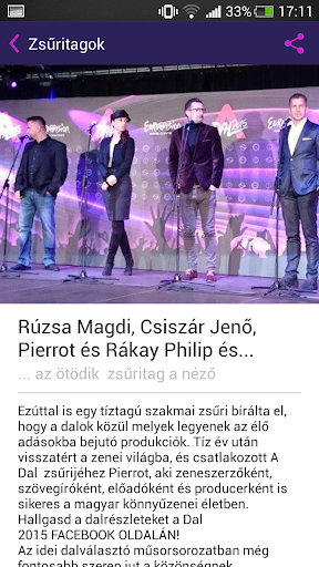 A Dal applikációval meghallgathatod a dalokat, a televíziós adás után visszanézheted a produkciókat, exkluzív interjúkat a színfalak mögött, sőt nézheted az élő adást. A műsor közben pedig az applikáció segíti a pontozást és a szavazást is. Legyél Te az ötödik zsűritag! Pontozd a produkciót 1-től 10-ig a dal elhangzásával egy időben. Sőt lehetőséged van továbbjuttatni kedvenced szavazataiddal. Egy telefonszámról maximum 20 érvényes szavazatot küldhetsz azokra a dalokra és előadókra, akik a zsűri pontszámai alapján nem kerültek a továbbjutók közé, de neked nagyon tetszettek. Figyelem! Érvényes szavazatot CSAK AZ ÖSSZES DAL ELHANGZÁSA UTÁN tudsz küldeni, amikor a műsorvezető elindítja a szavazást! A pontozás és a szavazás küldése is alapdíjas SMS alapú.