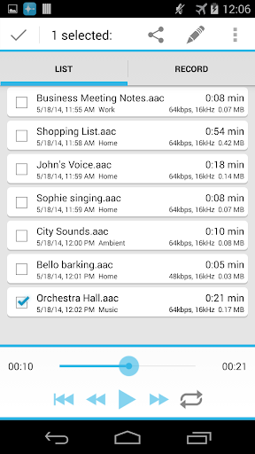 AAC Voice Recorder Pro is your reliable tool when it comes to audio recording. Record in high quality AAC format while saving diskspace. AAC Voice Recorder Pro records in the background - turn your screen off and let the app do the rest.