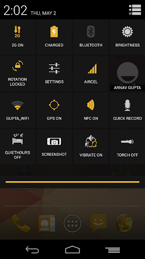This will turn the default Holo accents from Blue to Yellow. All stock icons/handles/toggles are present only with yellow hue. It is not too loud and will not screw up your icons or intrude all over your system.