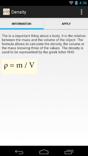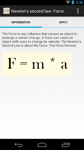 This app helps you to apply 12 (and more every month) formulas of the physics. It is supporting lots of devices and it now includes the following formulas:
