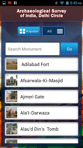 ASI (Archaeological Survey of India), Delhi Circle application is designed to provide experience of monuments of Delhi on mobile. User can experience the monument , get information about it and create own itinerary before visiting it.