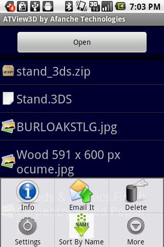 應用程序不僅僅是一個三維數據文件瀏覽器。這也是一個文件組織者。你可以保持在不同的子文件夾中的項目文件。應用程序提供文件排序功能,以幫助您快速找到您的模型。您可以按文件名或文件的創建時間。如果您需要共享三維模型,您可以使用應用程序的電子郵件功能,作為電子郵件附件發送您的模型。你可以使用的應用程序創建的文件夾,文件夾之間移動文件或刪除文件夾或文件。應用程序還為您提供壓縮/解壓縮功能,因此,你可以保存成一個zip文件中的所有項目文件。尤其是像3DS三維模型外有單獨的紋理圖像文件格式的幫助。