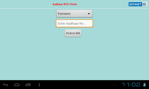 A free Application for Best Finger Detection (BFD) using Aadhar number and a USB fingerprint scanner. The application ranks the fingers of a user having valid Aadhar number in terms of present finger quality by comparing the captured fingers against the fingers data present on the staging server of UIDAI.The application will run on any device that supports USB host mode running Android OS version 3.1 and above. Currently three fingerprint sensors namely Futronics FS88 , Authentec ET500 and Authentec ET700 are supported. However,for using Authentec ET500 and ET700 scanners the mobile phone or tablet should be rooted.No rooting is required for Futronics FS88.For buying fingerprint scanners contact sales@smartid.in