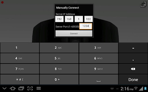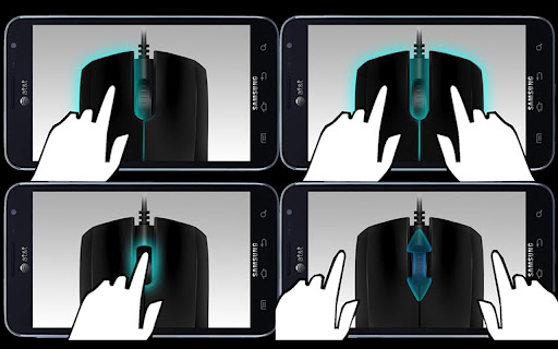 Accelerometer Mouse is a mobile application developed for the Google Android mobile platform which uses the accelerometer on the device to control a mouse pointer on a computer on the same network. Supported devices include any cellular device running Android 2.1 Eclair or higher. The application requires a WiFi network or USB Networking in order to function. The android application is a client which sends accelerometer data to a server application running on a computer, thus controlling the mouse via the tilting of the device. By tilting the phone up and down, the mouse on the screen will also translate up and down. Tilting the device side to side will also result in the mouse on the computer translating left or right. Scrolling can be achieved by putting two fingers on the white space and tilting the device up or down. Middle, left, and right buttons are utilized via touching the corresponding button on the screen. Multitouch is enabled, so more than one button can be pressed at any given time.