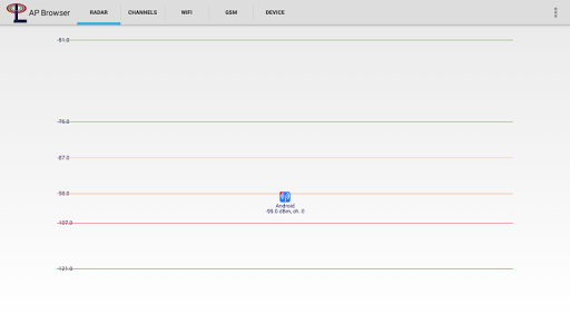 The app browses the WiFi access points and the telephone cells. It analyzes the WiFi channels and it shows the signal strengths and some more information (GSM, UMTS, ...) not directly available.