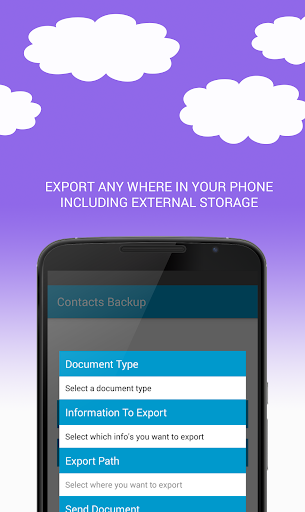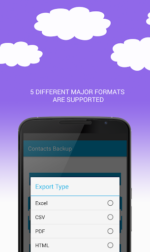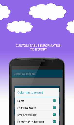Exporting your contacts has never been that easy and fast. You can customize your exporting information (name,phone numbers,addresses etc) and start exporting to different formats.