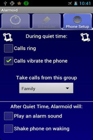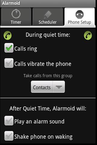 Be sure to setup the Alarmoid home screen widget so you can set quiet time with two touches.