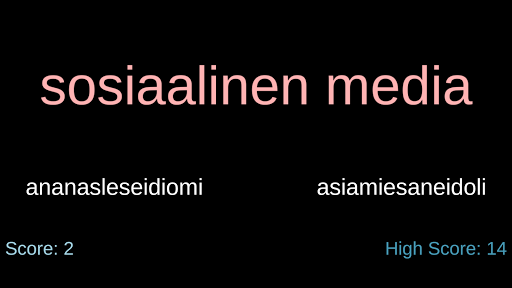 A word game which makes incredibly funny anagrams from words! You can choose Finnish or English as your language. Get yourself into top10 list by finding the correct anagrams!