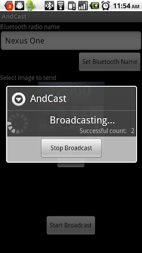 AndCast turns your Android 2.1 or higher into a bluetooth proximity marketing tool. You select an image to broadcast and it will scan for any discoverable bluetooth enabled phone within range and send your ads to the phones. Does not send to iPhone, Blackberry, or Android.