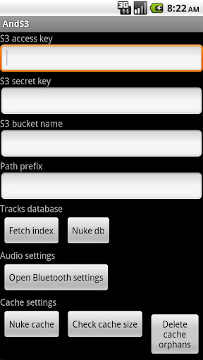 - Install AndS3 from the Android Market and start it