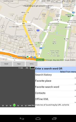 - put your present location (or search center point) registered fast to the "Favorite place", above "Reg" button. In addition, you can call its place from "Favorite place" easily when you want to come back in its place!