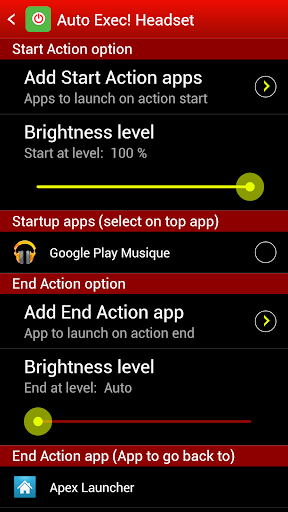 • Start your favorite music player when you plug your headset and go back to your launcher when you unplug them.