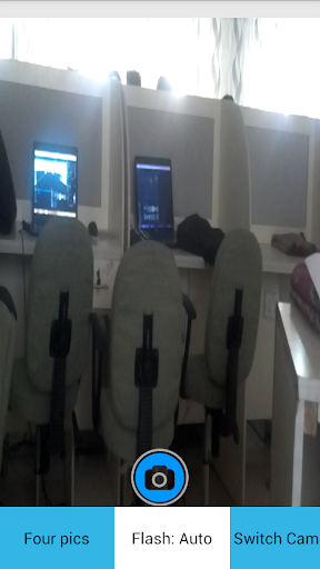 Help button is also there to serve users.After capturing the image is stored in Library named as Saved Pics.User can share (Facebook Twitter, Bluetooth ,G mail etc) and delete from Library. Another interesting feature of this Camera is that user can take four pics at a time.