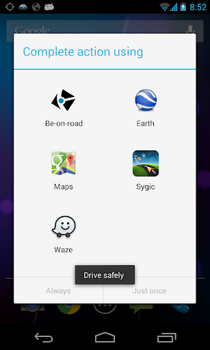 It creates a separate background process that launches a menu with all your available GPS apps when you start driving,