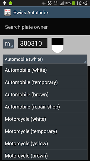 It is also possible to look for owners of motorbike, moped, agriculture and industrial vehicles plates, including colored (for instance yellow motorcycle plate) and temporary and repair shop plates. (depends on the canton)