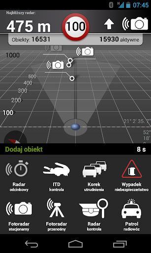 • czy w okolicy znajduje się aktywny fotoradar