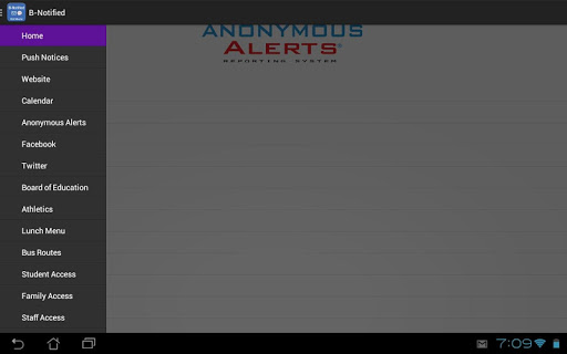 B-Notified App requires a school subscription and is customized with your campus or district logo and links to your website and resources. If your campus, school or school district is not a current subscriber of B-Notified ask them to call 888-291-2090, email info@k12alerts.com or go to www.k12alerts.com to request a subscription.