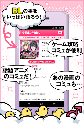 BL(ボーイズラブ)好きの方が趣味や嗜好が同じお友達とコミュニケーションを楽しんだり、BLのソーシャルゲームで楽しむ事が出来るSNS(ソーシャル・ネットワーキング・サービス)です。
