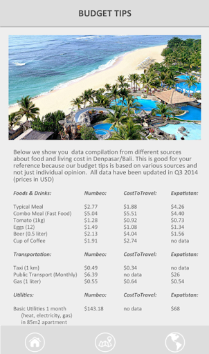 2. accurate budget and safety tips, including food and living cost from popular internet sources