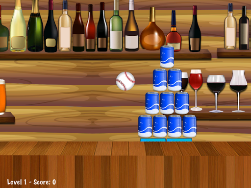The ultimate beer can game. Throwing baseballs at stacks of beer cans on the bar. I bet you don't get to do that in your local. How good are you? You only have 3 balls per level so you better be accurate.