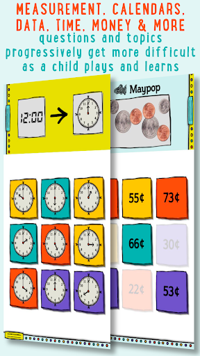 Then here is the MATH practice app that you have been looking for. . . one app that covers ADDITION, SUBTRACTION, PLACE VALUES, SHAPES, BASIC GEOMETRY, MEASUREMENT, TIME, MONEY & DATA practice for your 1st Grader throughout the year! The difficulty level progresses with your child as he or she learns.