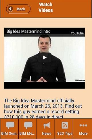 This app features the Big Idea Mastermind an online marketing system by Vick Strizheus, who has previously launched two other successful programs, High Traffic Academy and Global Success Club. The Big Idea Mastermind (BIM) is an educational or training platform that offers some of the best training for those that are seeking to start and online or internet marketing venture.