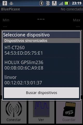 Esta aplicación permite captar y mostrar datos instantáneos enviados por un Picaxe (mediante Bluetooth), hacer la representación visual en forma de gráfica, marcar el máximo y mínimo recibidos.