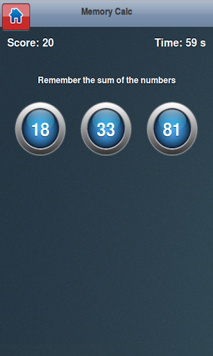 The game canvas will show three round boxes, each with a number on it. The numbers will be cleared within 5 seconds. Remember the sum of the numbers. Select the correct choice when asks. For each correct answer, you will get 10 points and will get 5 more seconds, and -10 for wrong answers.