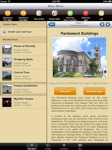 This handy application presents you several self-guided walking tours to see the best of the Bridgetown, Barbados, and it comes with detailed tour route maps and powerful navigation features to guide you from one sight to the next. No need to hop on a tour bus or join a tour group; now you can explore all of the best attractions on your own, at your own pace, and at a cost that is only a fraction of what you would normally pay for a guided tour.