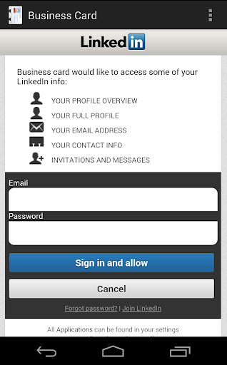 - You can share your professional data. You will only have to write the other person's email and Business Card will write a template for you with all your info. You can always edit it before sharing. If there is no internet connection, the email will be sent when connectivity is available.