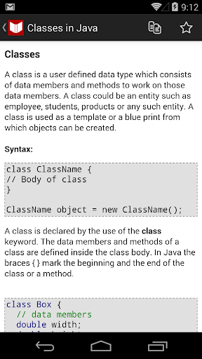 The app also includes reference the the programming languages, which covers all the basic concepts of C++ and Java, especially the ones needed to understand the programs included. The reference also includes example codes.