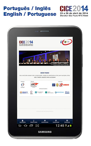 Aplicativo oficial do congresso CICE 2014 que será realizado nos dias 23, 24, 25 e 26 de abril, no Centro de Convenções do Sheraton São Paulo WTC Hotel, localizado à Avenida das Nações Unidas 12.559, São Paulo, Brasil.