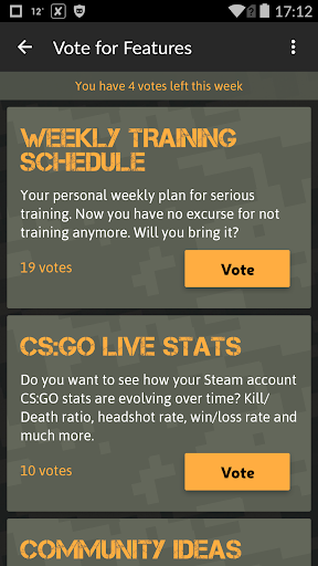 • Vote for the next feature: Take matters into your own hands and actively shape the future of CSGO SKILLS by voting for the next feature.