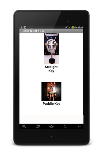 CW Morse Code practice oscillator. Choose from Straight Key or Paddle Key. Good for beginning ham amateur radio operators, Morse code and telegraph enthusiasts. Uses a 700Hz sidetone. Place your device in portrait mode flat on the table and you have a fairly comfortable software CW practice key! Iambic keyer simulated with the Paddle Key. Sliders on the paddle key adjust DAH length, cycle time, and DAH : DIT weight ratio. Straight Key ain't got rhythm as you would expect.