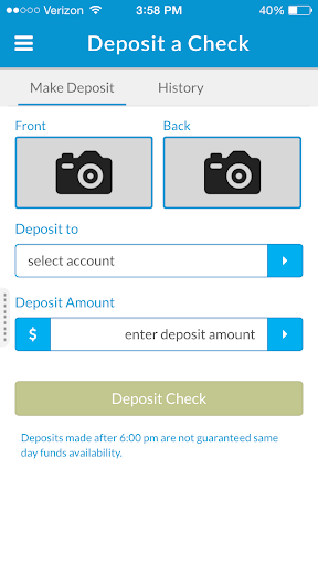 Make a photo of your check, not a trip to the bank to make deposits. Make your deposits securely on the go or after banking hours, directly into your eligible Cadence Bank checking or savings account.