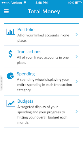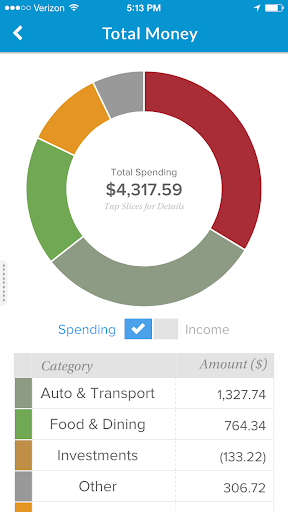 An expense tracker, money coach and visual budget tool all in one. View the transactions for all your accounts from multiple financial institutions, with totals by category. Create and monitor budgets based on your actual spending history.