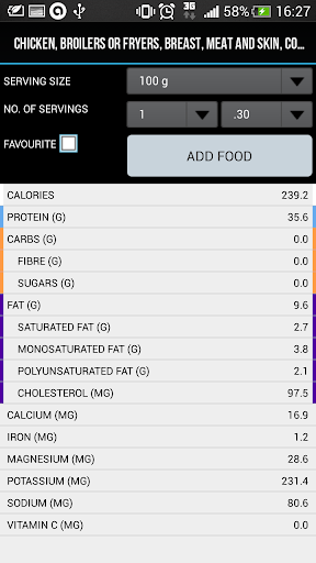 - Quick and easy food entry: select from your favourite, recently added and most frequently added foods!