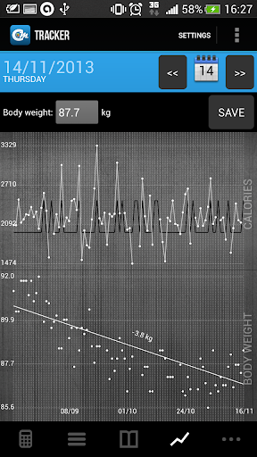 - Compare your daily caloric or macronutrient intake to your body weight on the same graph!