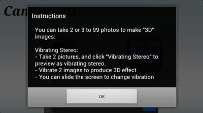 一款摄像头增强软件,能够利用手机摄像头拍出3D照片出来,其实就是拍摄两张照片或者多张(取决你的android手机设备),然后将它们拼组成一张立体照片。