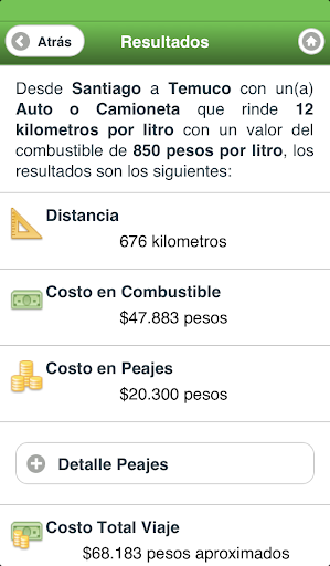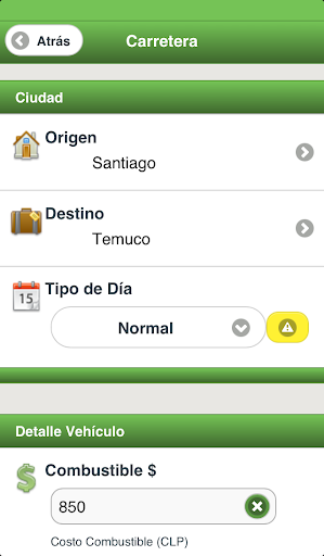 Aplicación que permite determinar los costos involucrados en un trayecto a realizar por tierra dentro de Chile, mostrando un mapa con el trayecto que incluyen los servicentros en el camino y las picadas.