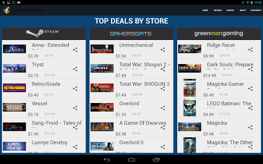 The app offers a native android interface for the CheapShark website.