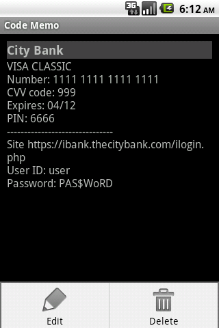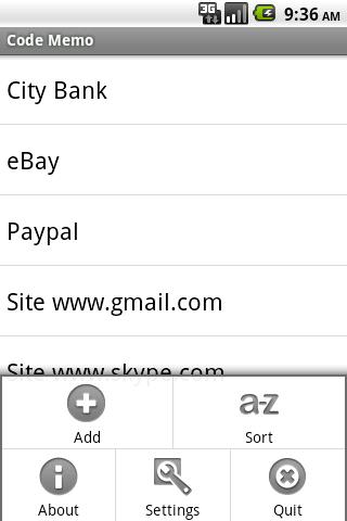 Code Memo Lite application is similar to the same name application for the Sony Ericsson mobile phones and allow user to save confidential information (passwords, PINs, memos) in a safe form.