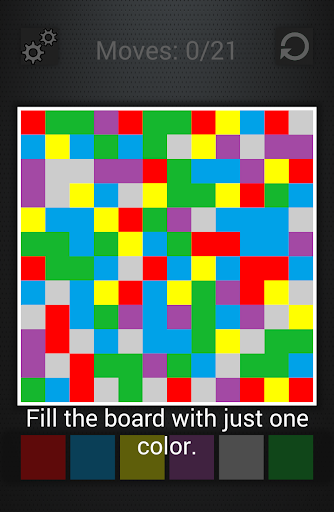 The goal is to fill the board with just one color, you start with just the tile in the top-left corner and should change its color to flood the adjacent tiles, continue changing colors until the board is completely flooded.