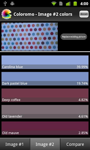 Coloromo Color Match™ application determines if two objects match in color. Extract all the colors in any object and color match them to another object. This application can be useful in home decorating, art, fashion, color blindness, and so much more!