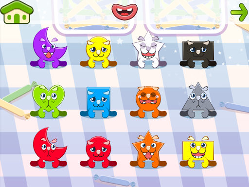 A simple concept for easy memorization: the shapes and colors are used repeatedly and progressively in many diverse, engaging interactive games (the child chooses a shape or color and then recognizes it among others, finds the hidden color, practices drawing the shape or colors it in with the right color etc.)