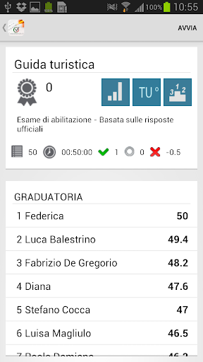 Il tuo andamento verrà registrato, ed in ogni momento avrai una visione chiara del tuo livello di apprendimento, potendo quantificare e individuare i quiz ai quali non rispondi costantemente in maniera esatta.