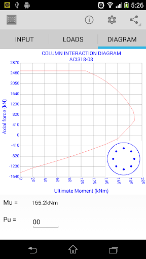 Design of reinforced concrete rectangular column by plotting the interaction diagram. Support the following design code: ACI318-08, EUROCODE 2 AND AS3600-09. Design input and output can be shared via email. Axial-Moment loads can be added in the chart to check if it is inside the envelope.