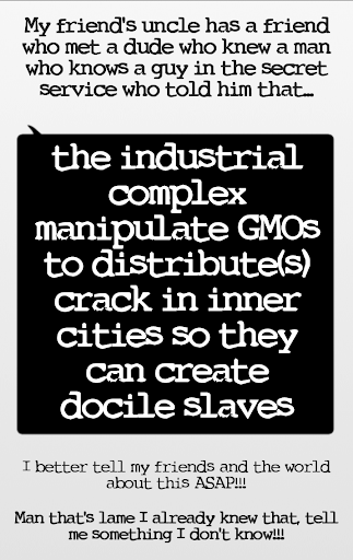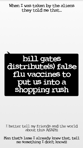 For the conspiracy theorist on the go, generate all your wacky conspiracy theories from the palm of your hand and share it with all your friends.